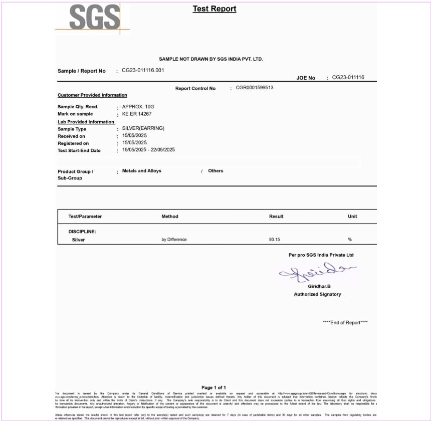 Each of our diamonds is accompanied by a verified test report from independent international laboratories such as IGI, SGL, or HIDL