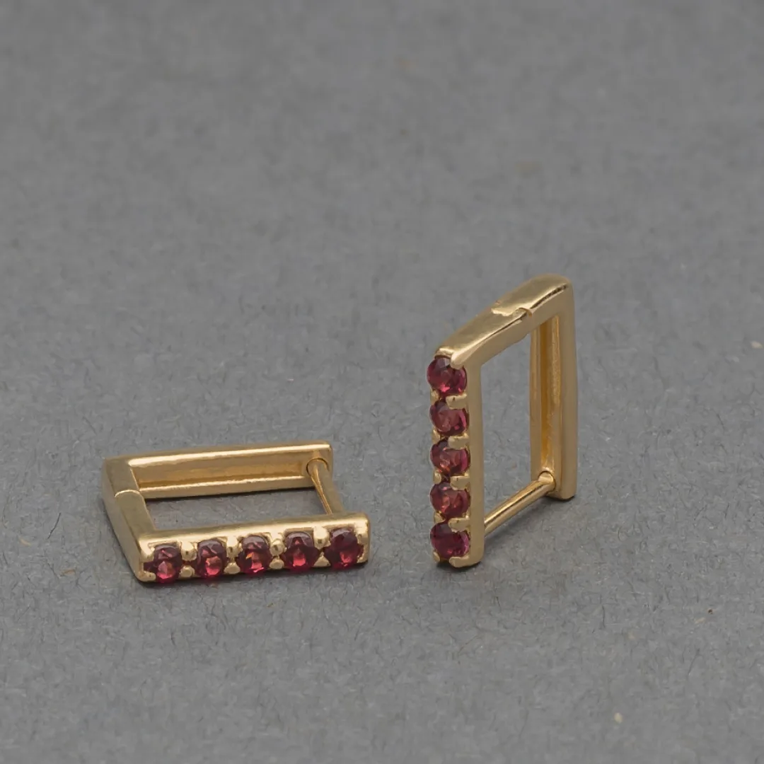 KE ER 13973 – Sterling Silver Rhodium Plated Huggies with Rhodolite Stones