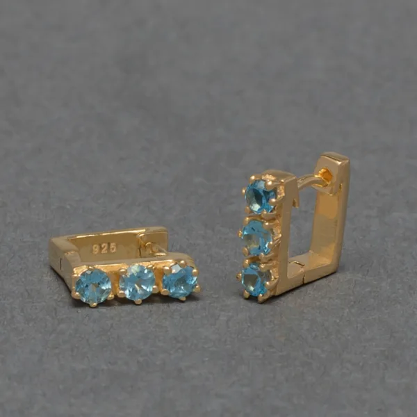 Sterling Silver Earring, Gold Plated studded with Blue Topaz