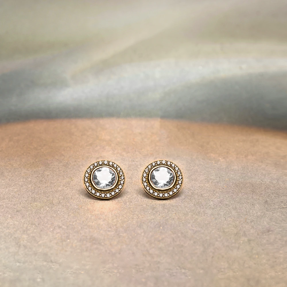 Sterling Silver Earring, Gold Plated with White Cubic Zirconia