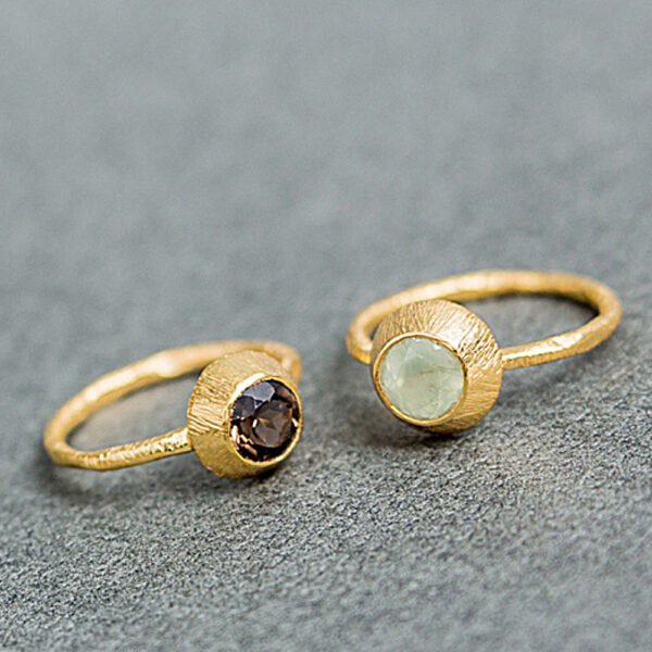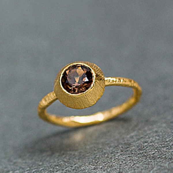 KE RG 12679 – Sterling Silver Gold Plated Ring with Smokey Quartz
