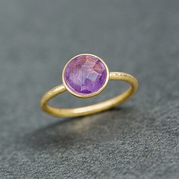 92.5 Sterling Silver Gold Plated Ring with Purple Amethyst
