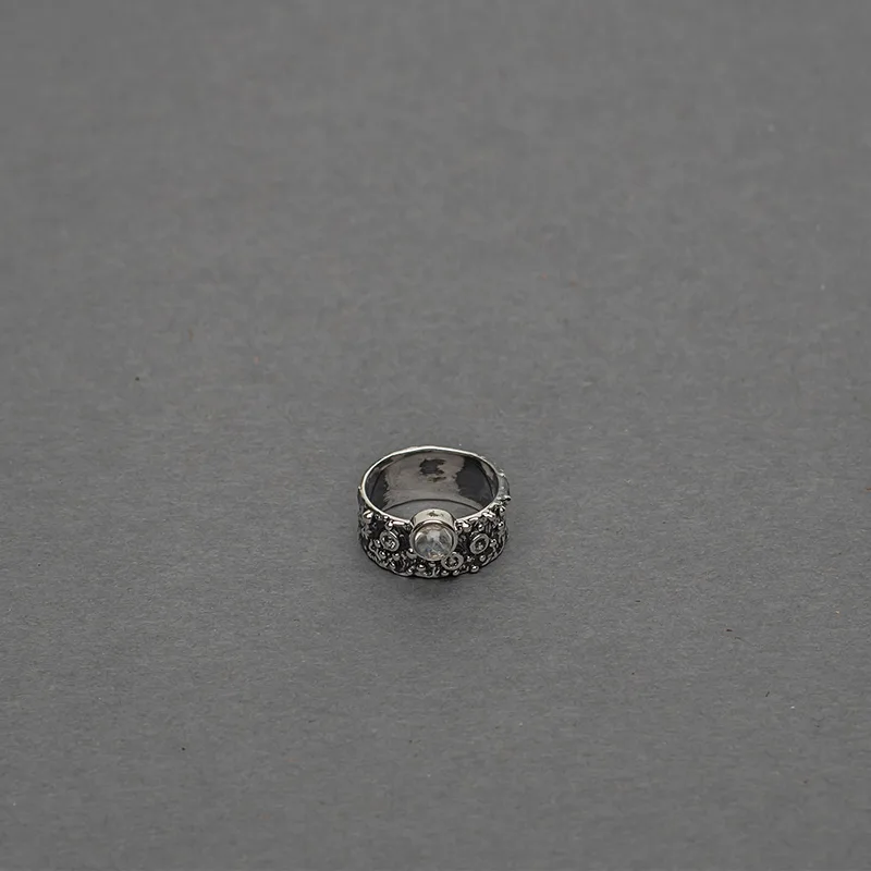 KE RG 14101 – Sterling Silver Oxidised Ring with Moonstone & Topaz