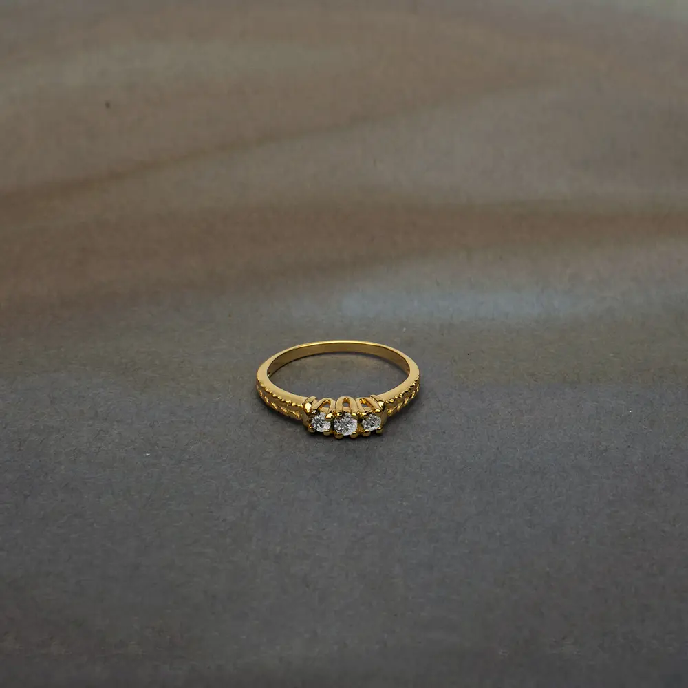 Gold Three-Diamonds Ring with Lab-Grown Diamonds